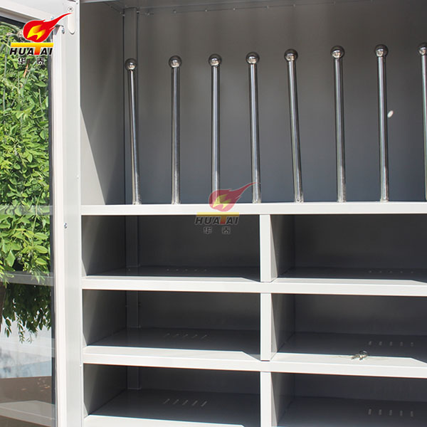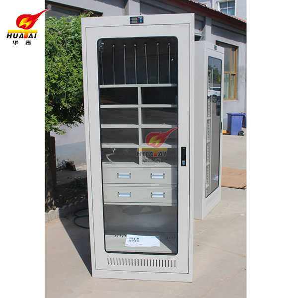 電力安全工具柜又稱安全工器具柜,按功能可以分為普通排風除濕柜,智能烘干除濕柜,智能抽濕除濕柜等 外殼選用1.2優質冷板,采用磷化鋅系、藝術型靜電噴涂,高強度鋼化透明玻璃(外觀色為微機灰)。接地線均配有接地線繞線架及帶夾反光編號牌,使接地線纏繞規范不易損壞,擺放整齊使用方便;絕緣手套配有防粘連撐板,絕緣擋板、絕緣棒、驗電筆、操作桿均設有橡膠墊定位卡,安全帶、腳扣、鑰匙設有專用掛鉤,標示牌按種類分格放置,圍網配有專用包,網桿配有專用筒,網桿座分格放置,防毒面具配有專用箱,呼吸器設有專用滑板。廣泛應用于各種電壓等級的變電站、集控站、線路工區以及電力公司客服中心等單位和部門,并適應不同溫濕度地區的使用。