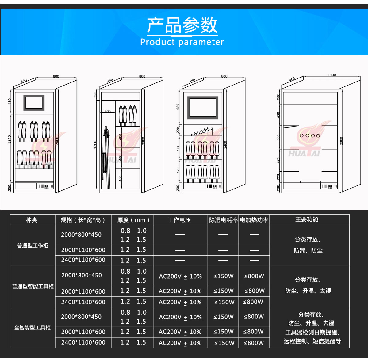 普通智能型工具柜 | 2000*800*450mm | 0.8mm 1.0mm | AC200V±10% | ≤150W | ≤800W | 分類存放、防塵、 | ||