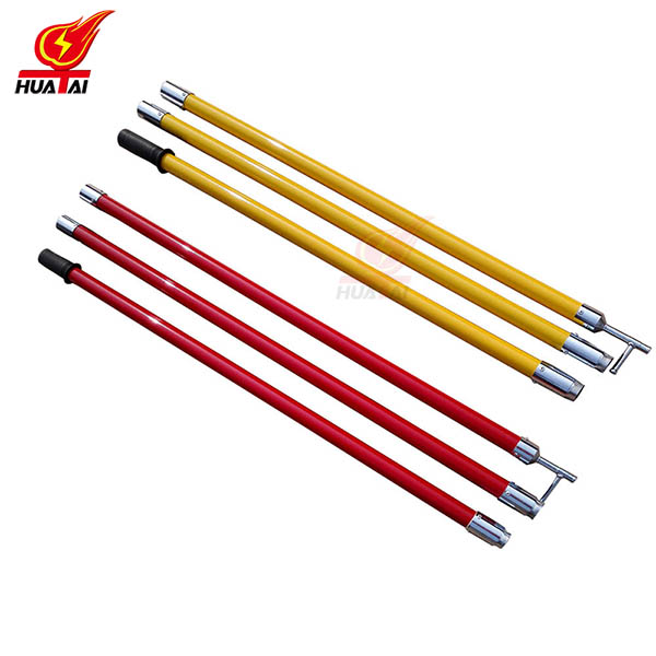 2. 絕緣操作桿的顏色:接扣式絕緣操作桿一般采用黃色絕緣桿,伸縮式絕緣操作桿一般采用上紅下黃顏色處理,紅色是做了防滑處理。桿拉開后是黃色的