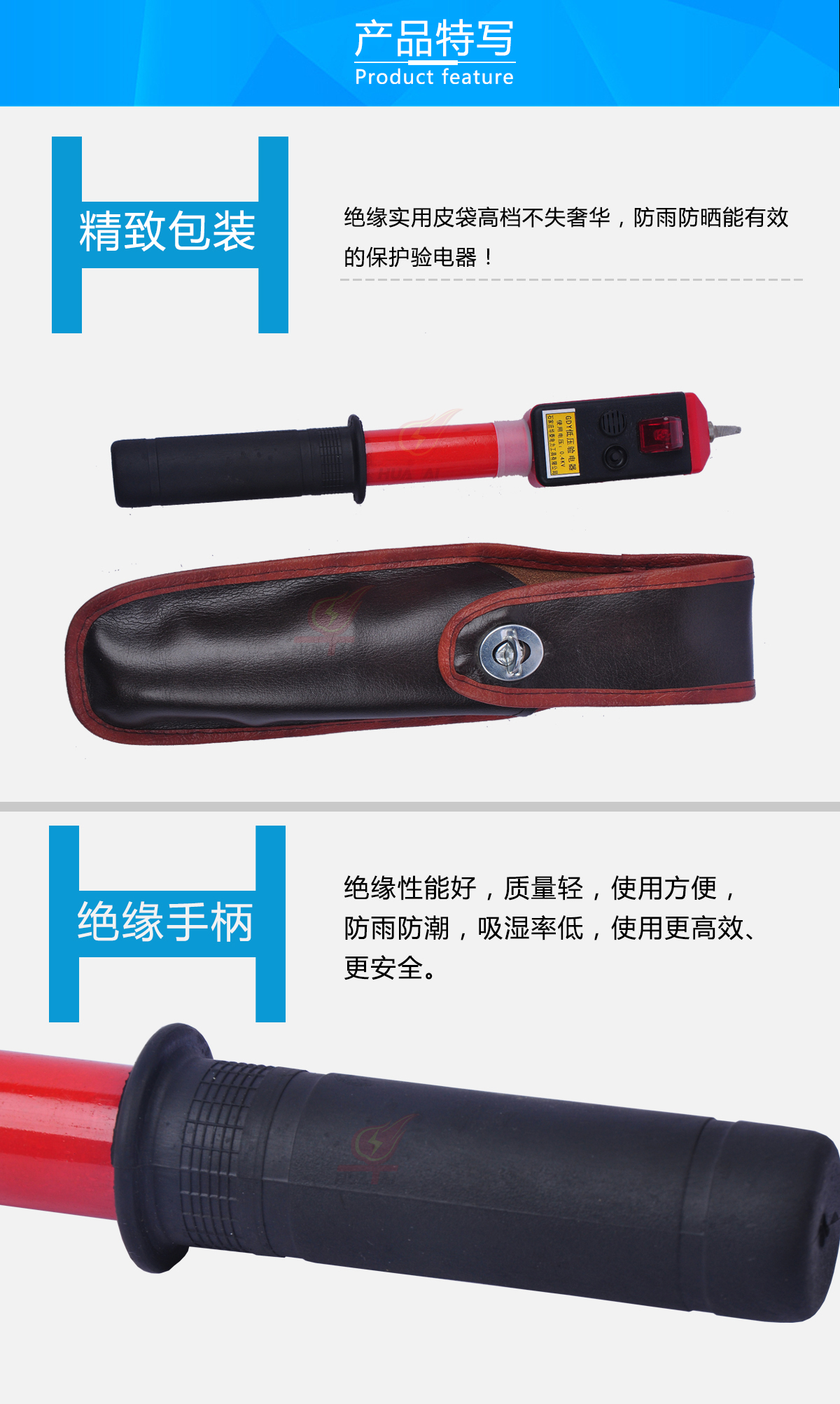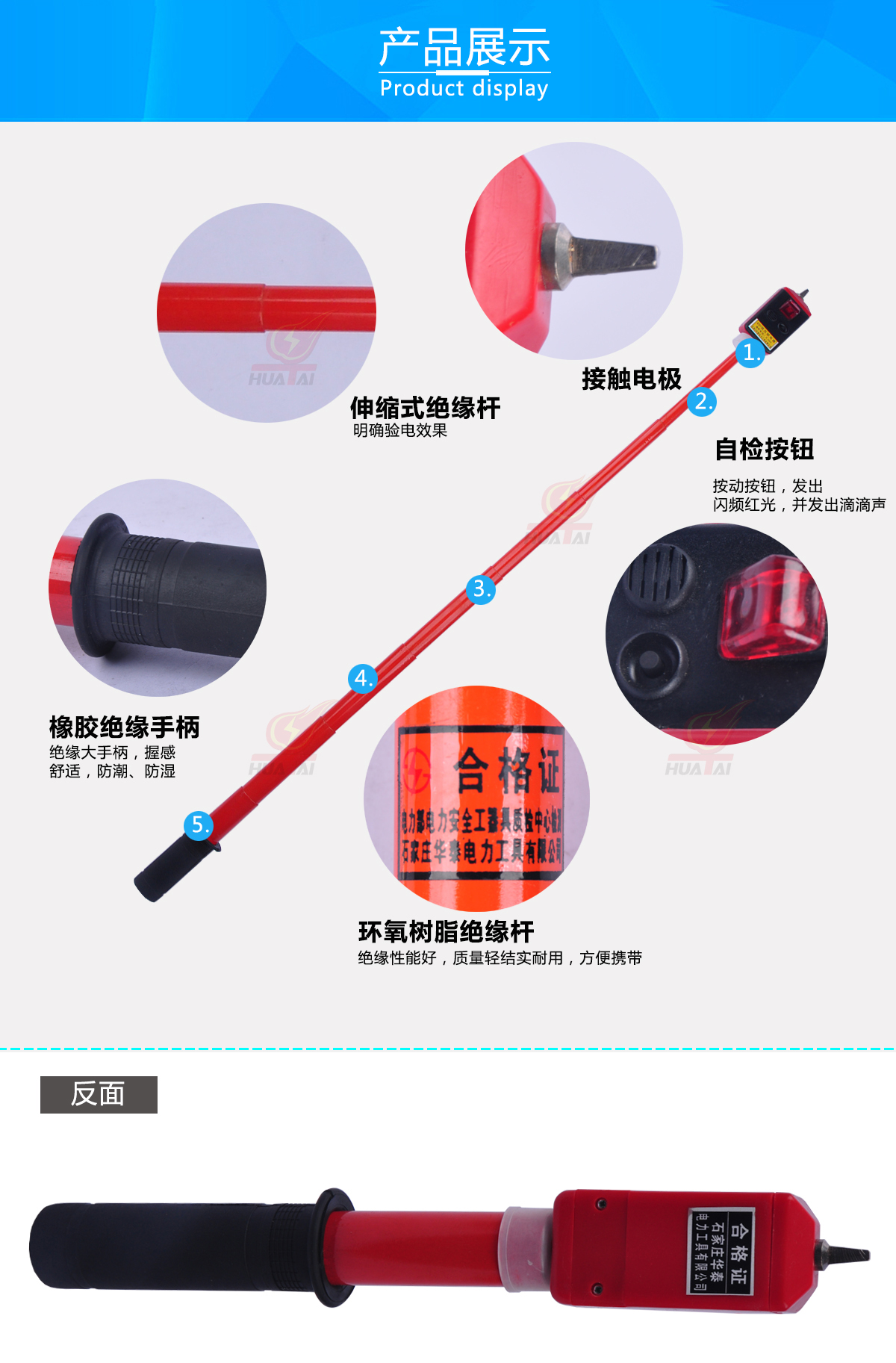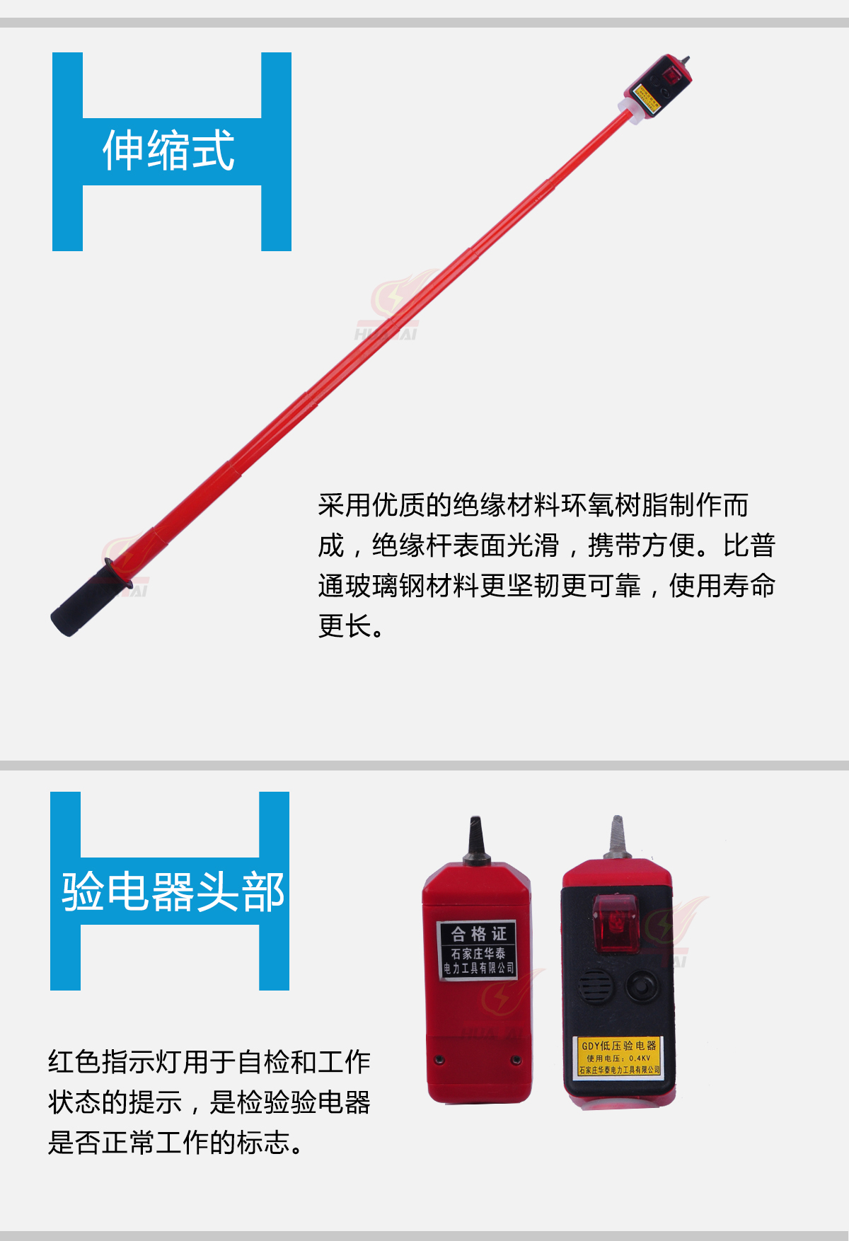 | 直流驗(yàn)電器 | 750V、1000V、1500V | 支 | 根據(jù)客戶需要,絕緣桿可再加長。 詳情請聯(lián)系客服! |