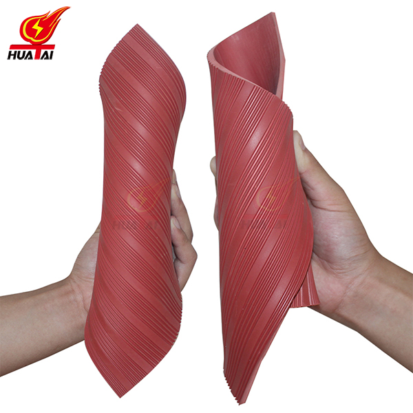 華泰電力生產(chǎn)的絕緣膠墊保證上下表面不存在有害的不規(guī)則性。絕緣膠墊表面不存在小孔、裂縫、局部隆起、切口、夾雜導電異物、折縫、空隙、凹凸波紋及鑄造標志等破壞均勻性、損壞表面光滑輪廓的缺陷。