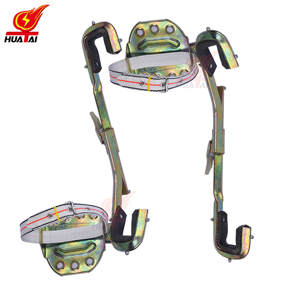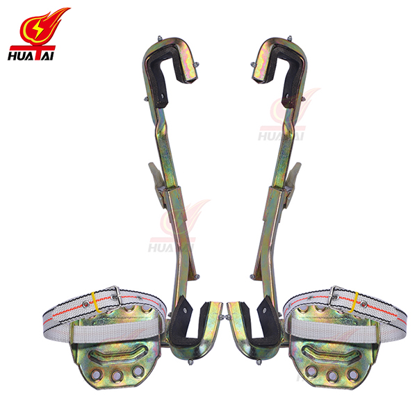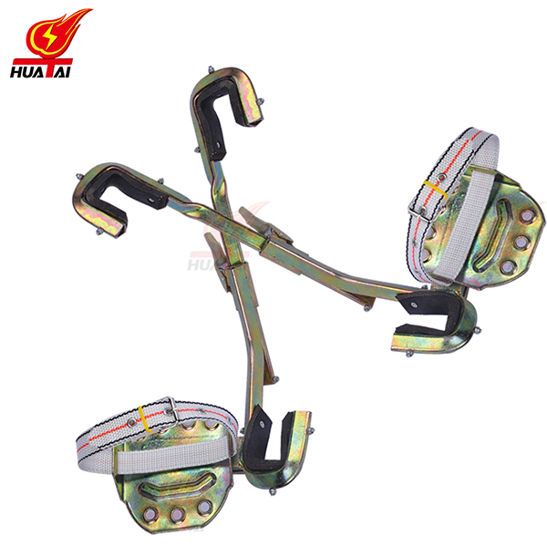 3、正式攀登前應(yīng)對腳扣作人體沖擊試登,判斷腳扣是否有變形和損傷。登桿前應(yīng)將腳扣登板的皮帶系牢,登桿過程中應(yīng)根據(jù)桿粗細隨時調(diào)整腳扣尺寸。