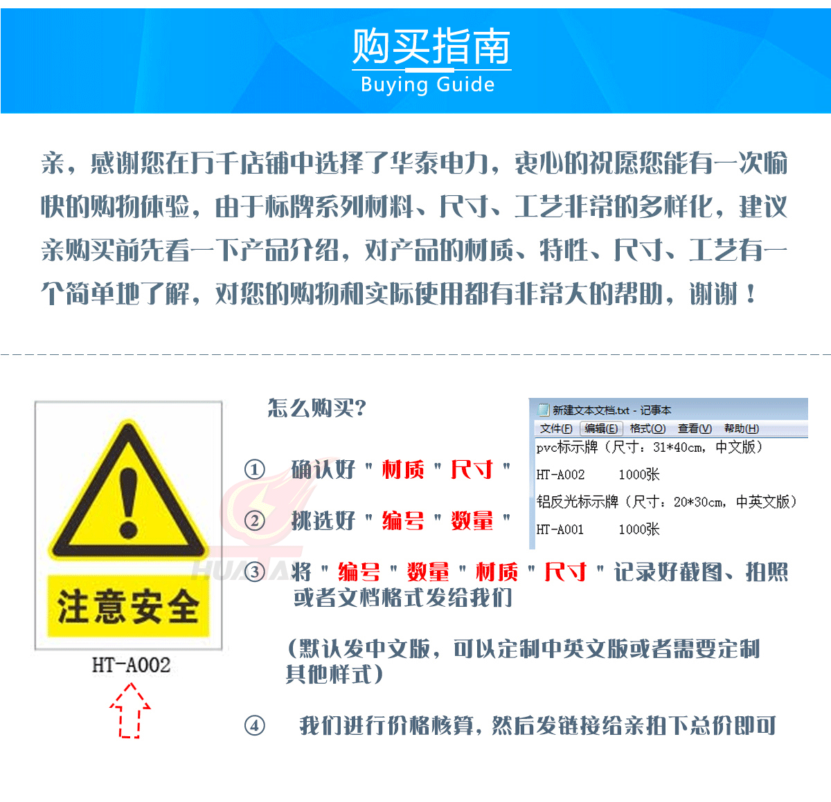 輔助標(biāo)志附加在主要標(biāo)志上起補(bǔ)充說(shuō)明作用,可分為表示車(chē)輛種類(lèi)、表示時(shí)間、表示區(qū)間范圍和表示距離等四種。輔助類(lèi)PVC材質(zhì)安全警示牌不能單獨(dú)設(shè)立