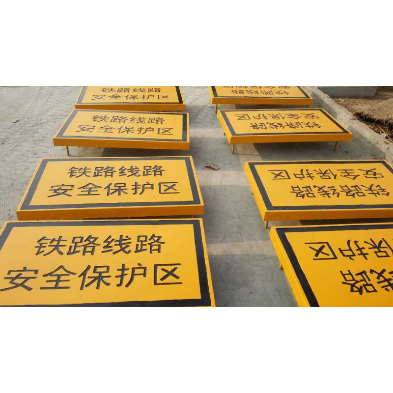 安全保護區B型標樁是采用鋼筋混凝土立柱及標牌制作埋設于混凝土基礎中的。B型樁為輔助型,主要適用于人員活動頻繁地段的道口,橋隧兩段,公交里嬌氣附近醒目地點,民居附近和人身災害事故多發的鐵路線路安全保護區邊界設置。